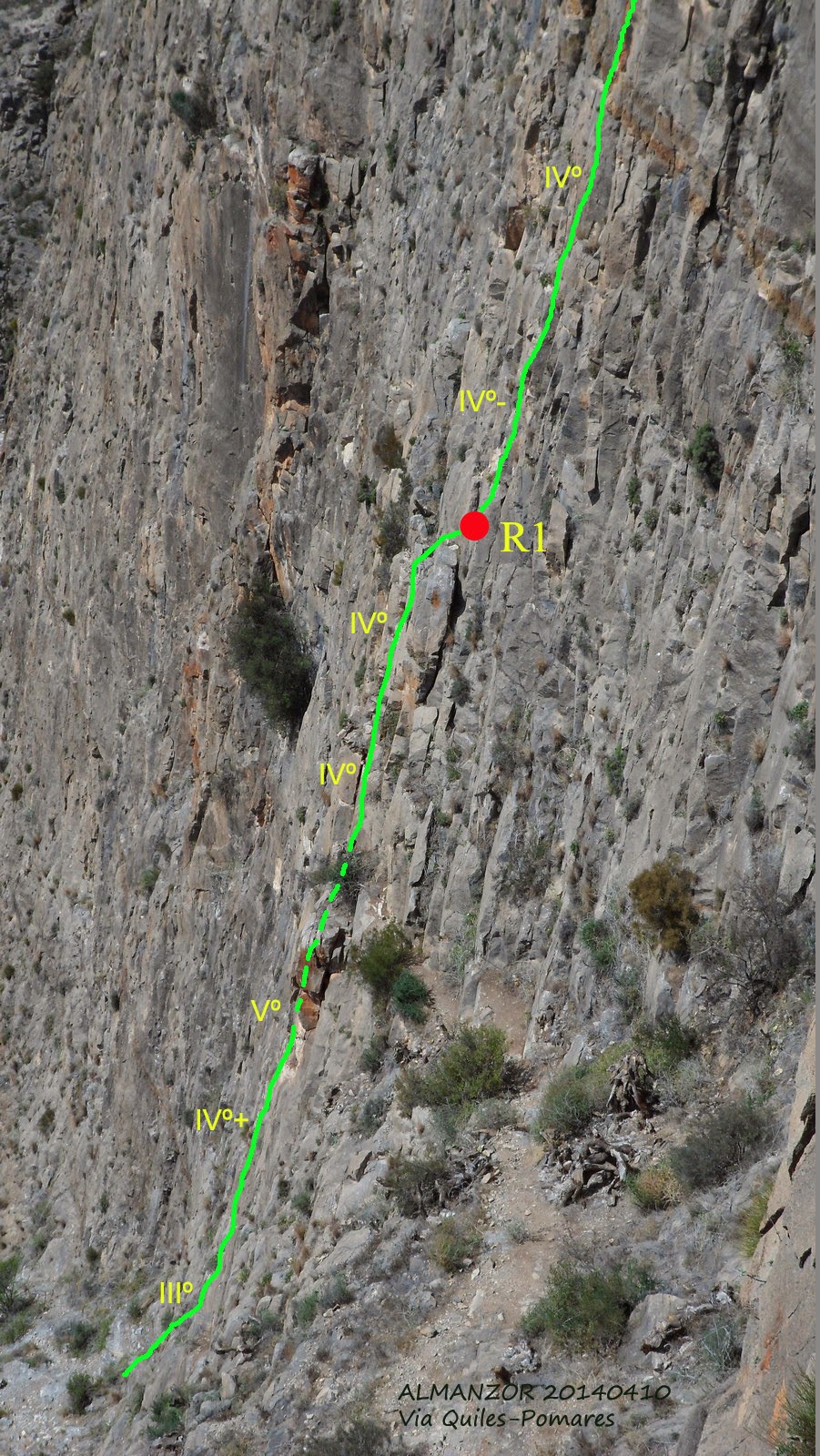 Me ha gustado mucho el trazado. Es bastante asequible, como he dicho antes es lo que busco. He tardado 4 horas y 45 minutos en escalar 250 metros y rapelar 120, con sus descansitos, fotitos y demás, qué te digo. Lo he disfrutado muchísimo. Gracias Quiles y Pomares.